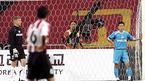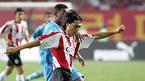 13일 인천 문학구장에서 열린 PSV 아인트호벤과 고려대 OB 프로올스타의 친선 경기서 히딩크 감독이 이끄는 아인트호벤이 1-0으로 이겼다. 고려대 올스타의 노정윤이 신발 끈이 풀린지도 모르고 플레이하고 있다./인천=손용호 기
