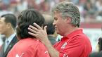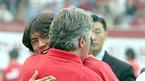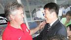 13일 인천 문학구장에서 열린 PSV 아인트호벤과 고려대 OB 프로올스타의 친선 경기에 앞서 히딩크 아인트호벤 감독이 자신을 찾아온 홍명보와 뜨거운 포옹을 나누고 있다./인천=손용호 기자 spjj@osen.co.kr [Copyright ⓒ OSEN(www.osen.co.kr