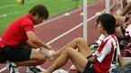 13일 인천 문학 월드컵경기장에서 열린 PSV 아인트호벤과 고려대 OB 프로올스타의 친선 경기 전반 8분만에 가벼운 부상으로 교체돼 나온 고려대 올스타의 박주영이 벤치에서 얼음 찜질을 받고 있다./인천=손용호 기자 spjj@osen.co.kr