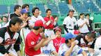 2005 삼성 PAVV 올스타 전야제가 15일 인천 문학구장에서 열렸다. 올스타전에 참가한 한화 선수들이 기념 촬영하는 뒤로 롯데의 정수근이 목을 슬쩍 내밀며 끼어 들고 있다./인천=주지영 기자 jj0jj0@osen.co.kr [Copyright ⓒ OSEN(www.osen.co.