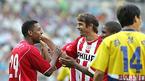 피스컵 2005 코리아 대회가 15일 서울 상암 월드컵경기장에서 성남 일화와 PSV 아인트호벤의 경기로 개막됐다. 아인트호벤의 이영표가 전반 선제골을 넣은 필립 코쿠에게 다가가 축하하고 있다./상암=손용호 기자spjj@osen.co.kr [Copyri