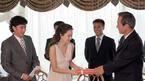 프랑스리그 FC 메츠로 이적한 안정환 부부가 15일 서울 소공동 롯데호텔에서 정몽준 대한축구협회장과 오찬을 함께 했다. 정 회장이 식사에 앞서 안정환 부부와 환담하고 있다./손용호 기자 spjj@osen.co.kr [Copyright ⓒ OSEN(www.osen.co.kr