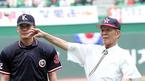 16일 인천 문학구장에서 벌어진 2005 삼성 PAVV 프로야구 올스타전에서 삼미 슈퍼스타즈의 초대 감독이었던 인천 출신인 왕년의 홈런왕 박현식 씨가 시구하고 있다. 박현식 씨는 현재 투병 중이다. /인천=손용호 기자 spjj@osen.co.kr [C