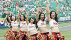 16일 인천 문학구장에서 벌어진 2005 삼성 PAVV 프로야구 올스타전에 앞서 벌어진 치어리더 공연에서 삼성 치어리더들이 침울한 표정으로 다른 팀의 공연을 지켜보고 있다. 삼성 치어리더는 좋은 공연 내용에도 불구하고 벨리 댄