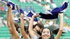 16일 인천 문학구장에서 벌어진 2005 삼성 PAVV 프로야구 올스타전에 앞서 열린 8개 구단 치어리더 경연대회가 열렸다. 세 번째로 경연에 나선 기아 치어리더가 대형 부채를 이용해 퍼포먼스를 벌이고 있다./인천=손용호 기자 spjj@o