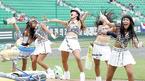 16일 인천 문학구장에서 벌어진 2005 삼성 PAVV 프로야구 올스타전에 앞서 열린 8개 구단 치어리더 경연대회가 벌어졌다. 첫 번째로 나선 시원한 옷차림의 현대 치어리더들이 바다를 주제로 공연을 펼치고 있다./인천=손용호 기자