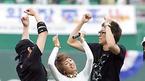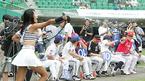 16일 인천 문학구장에서 벌어진 2005 삼성 PAVV 프로야구 올스타전에 앞서 열린 8개 구단 치어리더 경연대회가 열렸다. 첫 팀으로 나온 현대 치어리더가 호스로 시원한 물줄기를 뿌려대자 각 구단을 대표해 심사위원으로 나온 선수