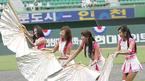16일 인천 문학구장에서 벌어진 2005 삼성 PAVV 프로야구 올스타전에 앞서 열린 8개 구단 치어리더 경연대회가 열렸다. 두 번째로 경연에 나선 한화 치어리더들이 힘찬 동작을 선보이고 있다./인천=손용호 기자 spjj@osen.co.kr [Copyright