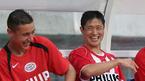 17일 광주 월드컵경기장에서 벌어진 피스컵 2005 코리아 대회 A조 PSV 아인트호벤과 온세 칼다스의 경기 스타팅 멤버서 제외된 아인트호벤의 이영표가 벤치에서 동료와 장난을 치고 있다./광주=손용호 기자spjj@osen.co.kr [Copyright ⓒ O