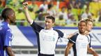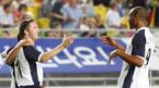 18일 수원 월드컵경기장에서 벌어진 피스컵 2005 코리아 대회 B조 토튼햄 핫스퍼와 선다운스 FC의 경기 후반 3-0을 만드는 자신의 두 번째골을 넣은 간판 스타 로비 킨(왼쪽)이 앞서 팀의 두 번째골을 뽑았던 동료 프레드릭 카누테