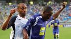 18일 수원 월드컵경기장서 벌어진 피스컵 2005 코리아 대회 B조 2차전 토튼햄 핫스퍼와 선다운스 FC의 경기 후반 토튼햄의 프레드릭 카누테(오른쪽)가 골을 성공시켜 2-0을 만든 뒤 로비 킨과 하니파이브를 나누며 기뻐하고 있다./