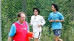동아시아선수권대회에 나설 국가대표 선수들이 25일 오후 파주 NFC에서 더운 날씨에도 불구하고 훈련을 실시했다. 발바닥 부상으로 정규 훈련에서 제외된 박주영(오른쪽 위)이 최주영 팀 닥터와 함께 그라운드 주변을 천천히 돌