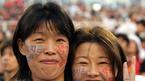 28일 맨체스터 유나이티드와 가시마 앤틀러스의 경기가 열린 도쿄 국립경기장을 찾은 일본 여성팬들이 가수 비(본명 정지훈)와 박지성의 이름을 얼굴에 새긴 채 승리의 V자를 그리고 있다. /도쿄=손용호 특파원 spjj@osen.co.kr [Copyr