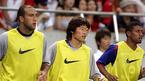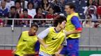 30일 일본 사이타마 경기장에서 벌어진 잉글랜드 맨체스터 유나이티드와 일본 우라와 레즈의 친선경기에 눈 주위 부상으로 결장한 박지성이 경기가 끝난 뒤 동료들과 함께 마무리 훈련을 하고 있다./우라와=손용호 기자 spjj@osen.