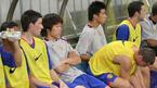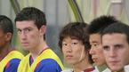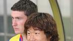 30일 일본 사이타마 경기장에서 벌어진 잉글랜드 맨체스터 유나이티드와 일본 우라와 레즈의 친선경기에 눈 주위 부상으로 결장한 박지성(오른쪽에서 세 번째)이 중국 출신의 동팡주오(오른쪽에서 두 번째) 등과 함께 벤치에