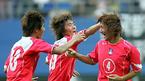 31일 대전 월드컵경기장에서 열린 제2회 동아시아선수권대회 개막전에서 0-1로 뒤지던 한국의 김진규(오른쪽)가 프리킥으로 동점골을 넣은 뒤 동료들과 기뻐하고 있다./대전=손용호 기자 spjj@osen.co.kr [Copyright ⓒ OSEN(www.osen.co.kr)