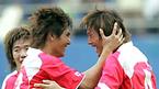 31일 대전 월드컵경기장에서 열린 동아시아선수권대회 개막전서 중국에 0-1로 뒤지던 한국의 김진규가 동점골을 넣은 뒤 김동진(왼쪽)과 서로 붙잡고 기뼈하고 있다./대전=손용호 기자 spjj@osen.co.kr [Copyright ⓒ OSEN(www.osen.co.kr) 무
