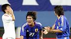 3일 대전 월드컵경기장에서 열린 제2회 동아시아선수권대회 중국과 일본의 경기 전반 중국의 장용하이(가운데)가 프리킥에 이은 헤딩으로 팀의 두 번째 골을 넣고 망연자실 서 있는 일본 선수들 가운데서 손을 번쩍 들며 달려