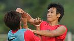 북한과의 제2회 동아시아선수권대회 2차전을 하루 앞둔 한국대표팀이 3일 오후 대전 월드컵경기장 보조구장에서 마무리 훈련을 했다. 훈련을 마친 뒤 이동국(오른쪽)이 포항 스틸러스 후배이기도 한 오범석에게 마치 '꿀밤'을