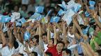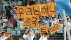 4일 전주 월드컵경기장에서 벌어진 제2회 동아시아선수권대회 한국-북한전은 0-0으로 승부를 가리지 못했다. 관중들이 손에 손에 작은 한반도기를 들고 파도 타기 응원을 펼치고 있다./ 전주=손용호 기자 spjj@osen.co.kr [Copyright ⓒ