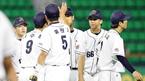 4일 두산 베어스와 LG 트윈스의 잠실경기서 6-3으로 승리, 선두 삼성에 이어 2번째로 시즌 50승 고지에 오른 두산 선수들이 하이파이브로 승리를 자축하고 있다./잠실=주지영 기자 jj0jj0@osen.co.kr [Copyright ⓒ OSEN(www.osen.co.kr) 무단전