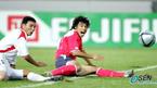 4일 전주 월드컵경기장에서 벌어진 제2회 동아시아선수권대회 한국-북한전 전반 한국의 김진용과 북한의 차정혁이 라인 밖으로 나간 볼을 보며 똑같은 포즈를 취하고 있다./ 전주=손용호 기자 spjj@osen.co.kr [Copyright ⓒ OSEN(www.osen.c