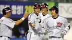 5일 LG 트윈스와 삼성 라이온즈의 잠실 경기 LG의 4회말 1사 만루서 조인성(오른쪽)이 그랜드슬램을 터뜨려 4-2로 역전시킨 뒤 먼저 홈을 밟고 기다리던 박용택 정의윤 박기남의 환영을 받고 있다./잠실=주지영 기자 jj0jj0@osen.co.kr [