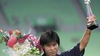 6일 대구 월드컵구장에서 벌어진 동아시아여자축구대회서 북한의 허순희가 대회 최우수 선수상을 받았다. 시상대에서 트로피를 높이들고 포츠를 취하고 있는 허순희. /대구=손용호 기자 spjj@osen.co.kr [Copyright ⓒ OSEN(www.osen.co.kr)