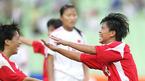 6일 대구 월드컵구장에서 벌어진 동아시아여자축구 북한과 중국의 경기서 후반 북한의 조윤미가 결승골을 넣고 동료의 환영을 받고 있다. 북한은 이 골을 잘 지켜내 중국에 1-0으로 승리를 거두었다. /대구=손용호 기자 spjj@osen.co