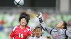 6일 대구 월드컵구장에서 벌어진 동아시아여자축구 북한과 중국의 경기서 후반 박경순이 중국 문전에서 헤딩슛을 하자 샤오 젠 골키퍼가 펀칭으로 걷어내고 있다. /대구=손용호 기자 spjj@osen.co.kr [Copyright ⓒ OSEN(www.osen.co.kr) 무
