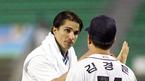 9일 두산 베어스와 현대 유니콘스의 잠실경기서 8이닝 3피안타 10탈삼진 무실점으로 호투, 2-0 완승을 이끈 두산 선발 투수 리오스가 경기 후 김경문 감독의 축하를 받고 있다./잠실=주지영 기자 jj0jj0@osen.co.kr [Copyright ⓒ OSEN(www.ose