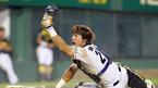 9일 두산 베어스와 현대 유니콘스의 잠실경기 현대의 7회초 1사 1,3루서 강귀태의 플라이를 잡은 좌익수 전상렬의 정확한 홈 송구를 받아 태그업한 3루 주자 정성훈을 태그한 두산 포수 홍성흔이 '확실한 아웃'이라는 득의의 표