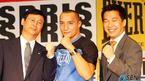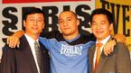 10일 서울 홍은동 그랜드 힐튼 호텔에서 스포츠용품업체 스프리스와 데니스 강의 공식 후원 계약 조인식이 열렸다. 데니스 강이 조인식을 마친 뒤 스프리스 김세제 사장(왼쪽), 자신의 에이전시인 엔프리안 박광현 대표의 어깨