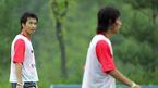 12일 남북 통일축구를 이틀 앞둔 대표팀이 파주 트레이닝 센터에서 2시간에 걸쳐 강도 높은 훈련을 가졌다. 이천수(앞)와 이동국이 본격적인 훈련에 앞서 가벼운 운동으로 몸을 풀고 있다./파주=주지영기자jj0jj0@osen.co.kr [Copyright