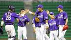 13일 두산 베어스와 SK 와이번스의 잠실경기 1-1이던 SK의 6회초 무사 1,3루서 3점 홈런을 치고 들어온 이진영의 머리를 한 동료가 야구공으로 때리자 이진영이 상체를 굽히고 있다./잠실=주지영 기자 jj0jj0@osen.co.kr [Copyright ⓒ OSEN(ww