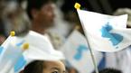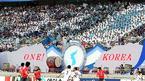 서울 상암 월드컵경기장에서 14일 열린 남북 통일축구에서는 태극기나 인공기가 아닌 대형 한반도기가 관중석을 덮었고 "대∼한민국" 응원 구호 대신 "통∼일조국"의 외침이 울려퍼졌다. 국제축구연맹(FIFA)의 페
