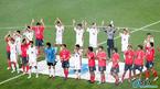 14일 서울 상암 월드컵경기장에서 벌어진 남북 통일축구 경기는 친선경기로는 큰 스코어 차인 3-0으로 남측이 북측에 이겼다. 양측 선수들이 경기가 끝난 뒤 센터 서클에서 관중들에게 인사를 하고 있다./상암=손용호 기자 spjj@os