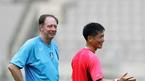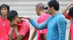 오는 17일 2006 독일월드컵 아시아 최종예선 마지막 경기인 사우디아라비전을 이틀 앞둔 15일 오후 태극전사들이 서울 상암 월드컵경기장에서 해외파 선수들이 합류한 가운데 훈련을 실시했다. 본프레레 감독이 차두리에게 진지