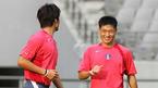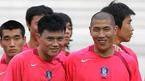 오는 17일 2006 독일월드컵 아시아 최종예선 마지막 경기인 사우디아라비전을 이틀 앞둔 15일 오후 태극전사들이 서울 상암 월드컵경기장에서 해외파 선수들이 합류한 가운데 훈련을 실시했다. 정경호(왼쪽)가 오랜만에 만난 차