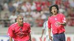 17일 서울 상암 월드컵경기장에서 벌어진 2006 독일월드컵 아시아 최종예선 마지막 경기인 한국-사우디아라비아전 전반 백지훈의 헤딩슛이 상대 골키퍼 선방에 막히자 문전으로 쇄도하던 차두리와 안정환(오른쪽)이 아쉬워 하
