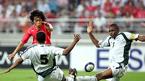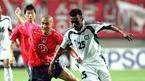 17일 서울 상암 월드컵경기장에서 벌어진 2006 독일월드컵 아시아 최종예선 마지막 경기인 한국-사우디아라비아전 전반 안정환이 상대 수비수의 태클에 걸려 볼이 뒤로 흐르자 쫓아가던 차두리가 잡고 있다./상암=손용호 기자 sp