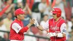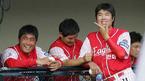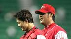 19일 잠실야구장에서 열린 LG 트윈스와 한화 이글스의 경기. 3루에 위치한 한화 이글스 덕아웃에서 조성민(왼쪽)과 정민철이 얘기를 나누며 밝게 웃고 있다. 둘은 일본 요미우리 자이언츠에서 함께 선수생활을 했었다. /잠실=손