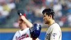 20일(한국시간) 터너필드에서 열린 애틀랜타 브레이브스와 원정경기에서 박찬호가 땀에 젖은 얼굴로 역투하고 있다. 이날 애틀랜타의 기온은 섭씨 28도 남짓 됐지만 습도가 높아 그라운드 위의 선수들이 플레이하기 힘들 만큼