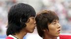 21일 서울 상암 월드컵경기장에서 열린 2005삼성 하우젠 K-리그 올스타전 식전행사 도중 박주영(왼쪽)이 백지훈에게 귓속말을 하고 있다./상암=손용호기자 spjj0@osen.co.kr [Copyright ⓒ OSEN(www.osen.co.kr) 무단전재 및 재배포 금지]