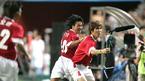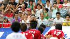 21일 서울 상암 월드컵경기장에서 펼쳐진 2005삼성 하우젠 K-리그 올스타전에서 전반 38분 정경호의 도움으로 2-1 역전골을 성공시킨 남부 올스타팀의 이동국(가운데 흰옷)이 주먹을 불끈 쥐고 기뻐하고 있다. 상대편인 박주영(오