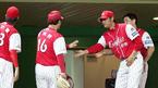 23일 문학구장에서 벌어진 SK 와이번스와 한화 이글스의 경기 1-1 동점이던 SK의 9회말 2사 1,2루에서 마운드를 내려온 선발 투수 문동환을 덕아웃에 있던 조성민이 격려하고 있다. 그러나 이어 나온 차명주가 이진영에게 끝내기