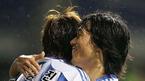 24일 광주 월드컵경기장에서 벌어진 광주 상무와 FC 서울의 삼성 하우젠 K리그 후기 첫 경기 팀이 1-0으로 앞서던 후반 쐐기골을 어시스트를 기록한 서울의 박주영과 골을 넣은 김동진이 포옹을 하고 있다./광주=손용호 기자 spjj@os