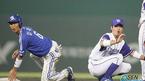 27일 문학구장에서 벌어진 SK 와이번스와 삼성 라이온즈의 경기 삼성의 8회초 무사 1루 양준혁의 내야 땅볼때 2루에서 포스아웃된 김재걸과 SK 유격수 김민재가 진지한 표정으로 1루 판정을 쳐다보고 있다. /인천=손용호 기자 spjj@o