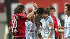 28일 서울 상암 월드컵경기장에서 벌어진 FC 서울과 울산 현대의 경기 전반 서울 히칼도의 반칙으로 양팀 분위기가 험악해진 가운데 울산 유상철(오른쪽)과 히칼도가 손을 맞대며 약간의 실랑이를 벌이고 있다./상암=손용호 기자