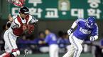 3일 잠실야구장에서 벌어진 LG 트윈스와 삼성 라이온즈의 경기서 LG가 삼성에 6-3으로 재역전승을 거뒀다. 삼성의 8회초 2사 1,2루서 김재걸이 유택현의 원바운드로 들어온 체인지업에 헛스윙, 삼진을 당하고 있다./잠실=손용호 기